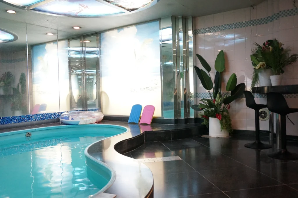 プール、ジャングル、和室、そして本格SMルームまで。